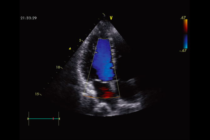 エコー画像の診断用に、Bモード(2D画像)、Dモード(ドップラー画像)、Mモード(ムービング画像)の3種の計測機能の搭載しました。Bモードでは、A2C、A4Cの体積計測、EFの算出や、バイプレーン撮影でのEFの算出が可能。Dモードでは時間、速度、加速度、VTIの計測が行え、Mモードでは時間、長さ、速度の計測できます。